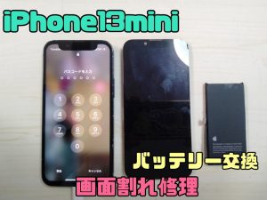 iPhone13mini画面割れ修理とバッテリー交換のご依頼です🛠️